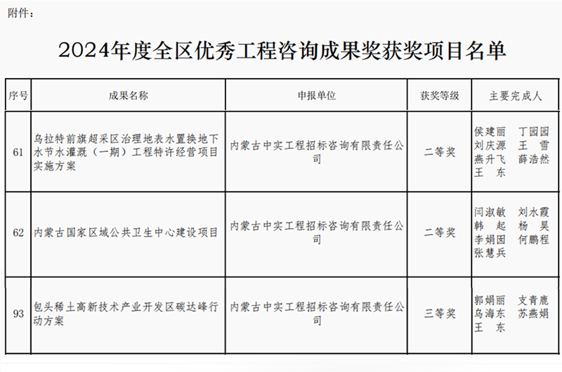 2025-04-167841 次2025年4月16日,内蒙古工程咨询协会公布了2024年度优秀咨询成果奖获奖单位名单,我司取得两个二等奖和一个三等奖,我司专业能力和服务质量再次获得行业的认可。此次获奖,不仅体…